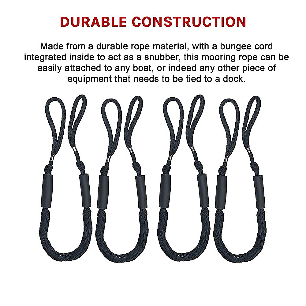 4 Pack Marine Bungee Dock Line Boat Mooring Rope Anchor Cord Stretch