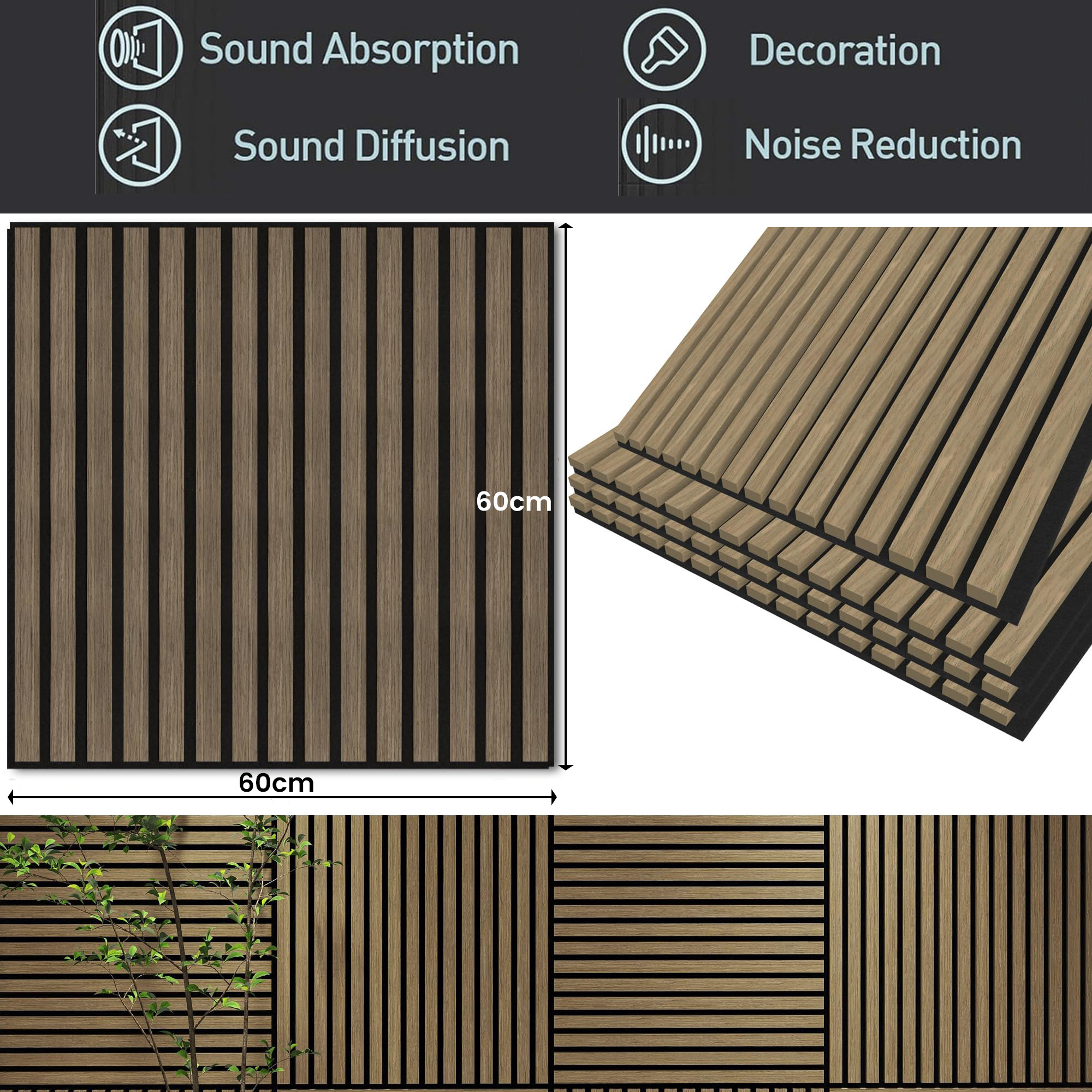 - Dimensions: 60cm x 60cm x 2.2cm per panel – ideal size for versatile applications across various room types.