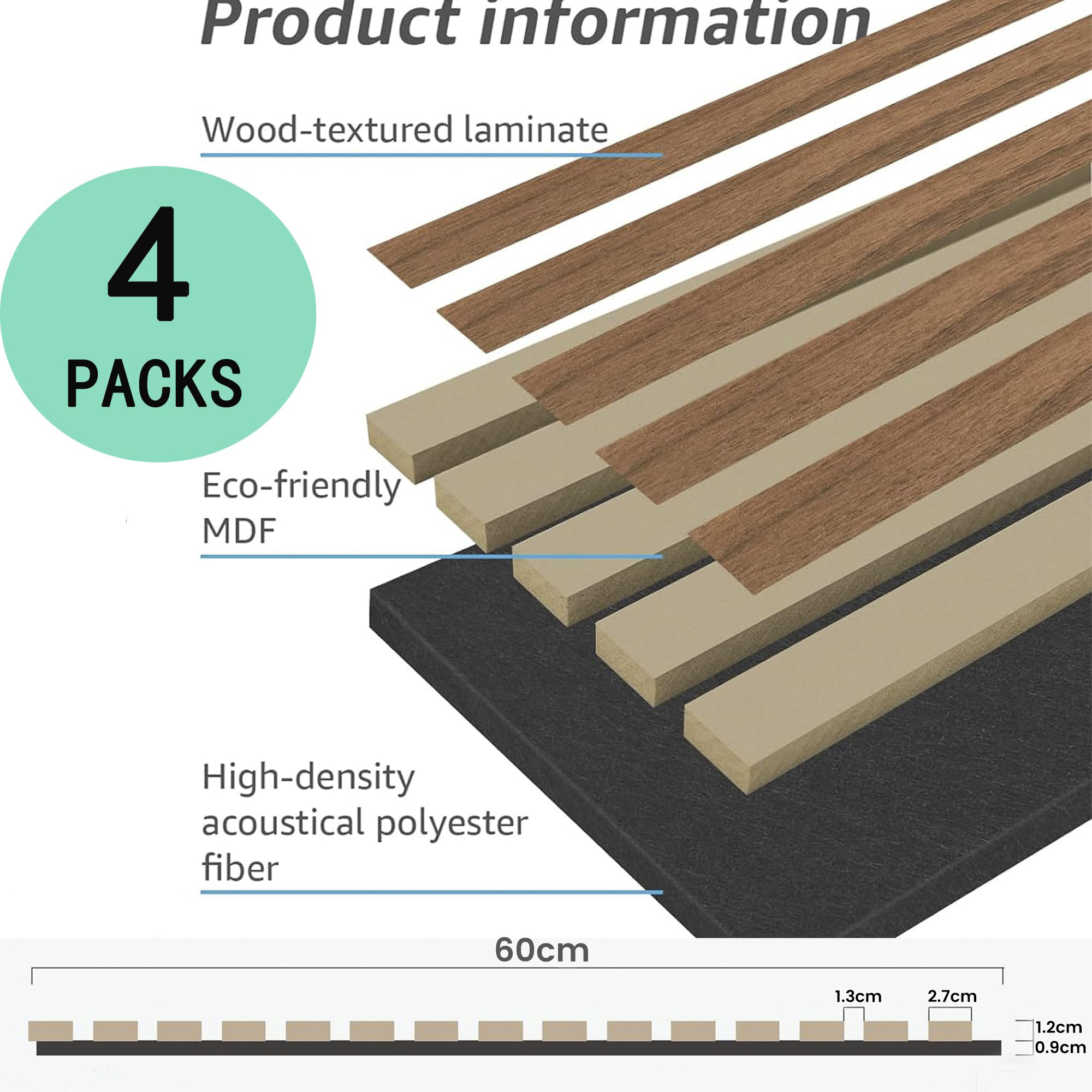- Material: Made of wood-textured laminate, eco-friendly MDF, and high-density acoustical polyester fiber, ensuring durability and excellent sound absorption.