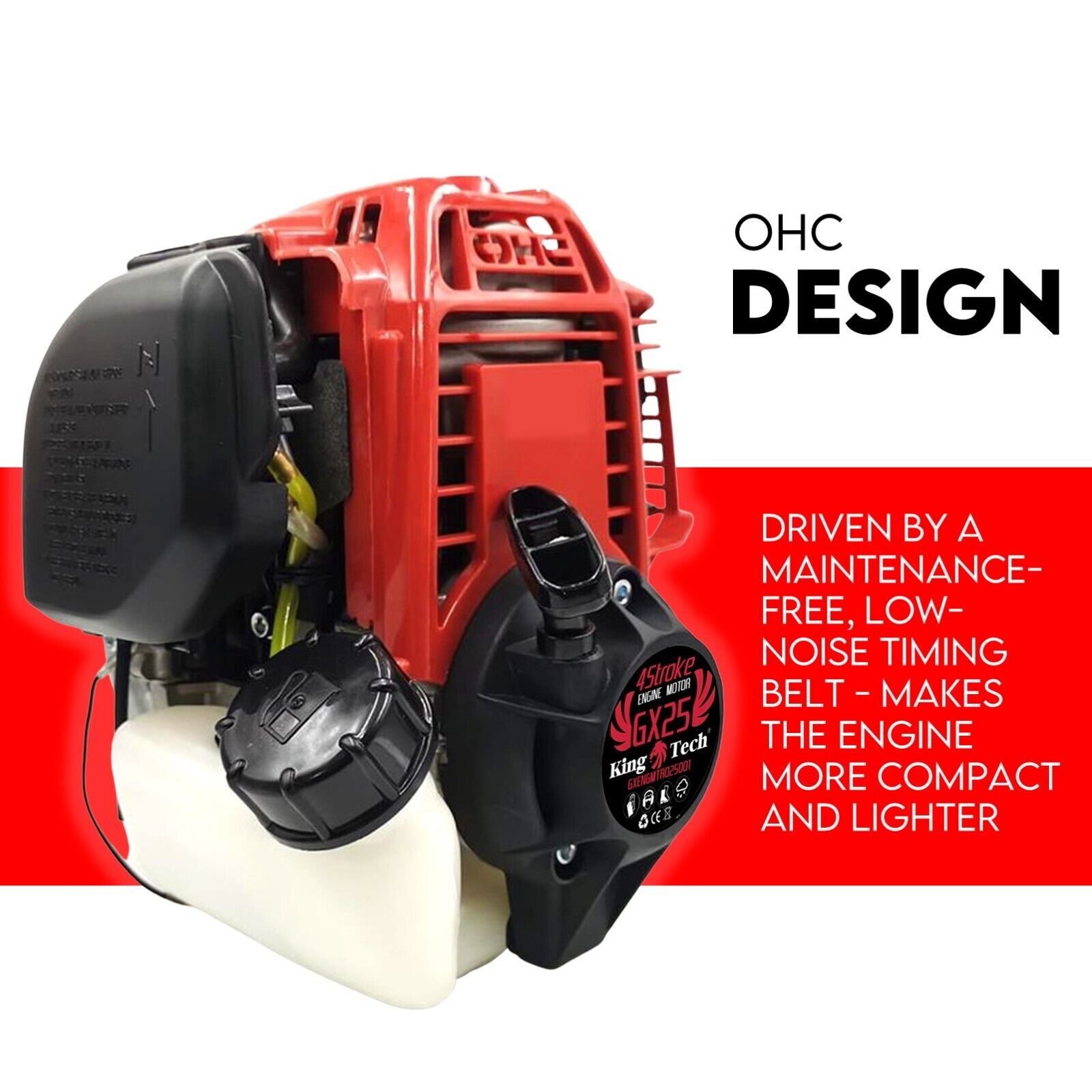 The new Kingtech GX25 25cc displacement, 360°- inclinable 4-stroke engine is an ideal power source for a variety of hand-held power equipment.