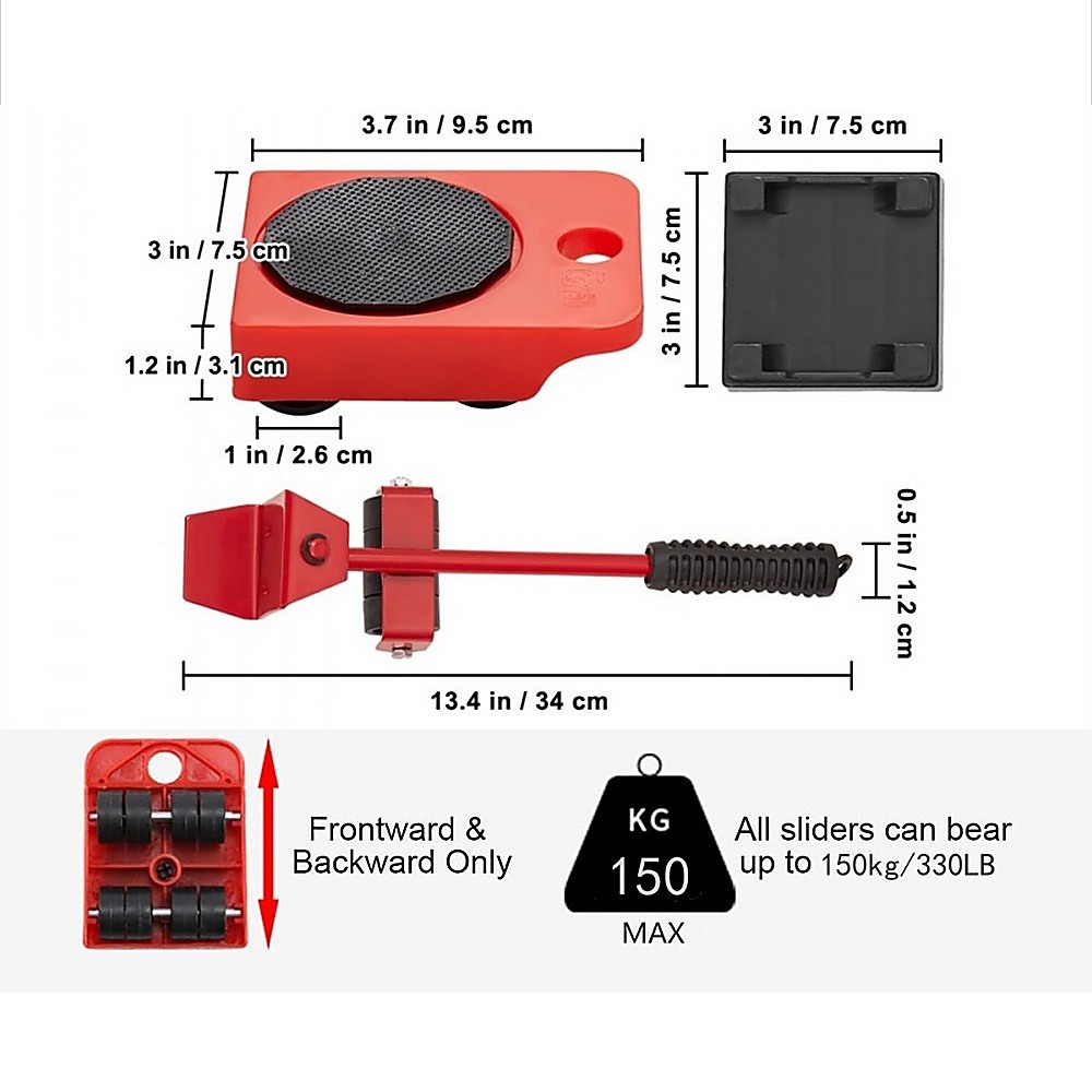 • Theset comes with 4 x furniture dolly sliders, 1 lifter, and 4 heightening pads