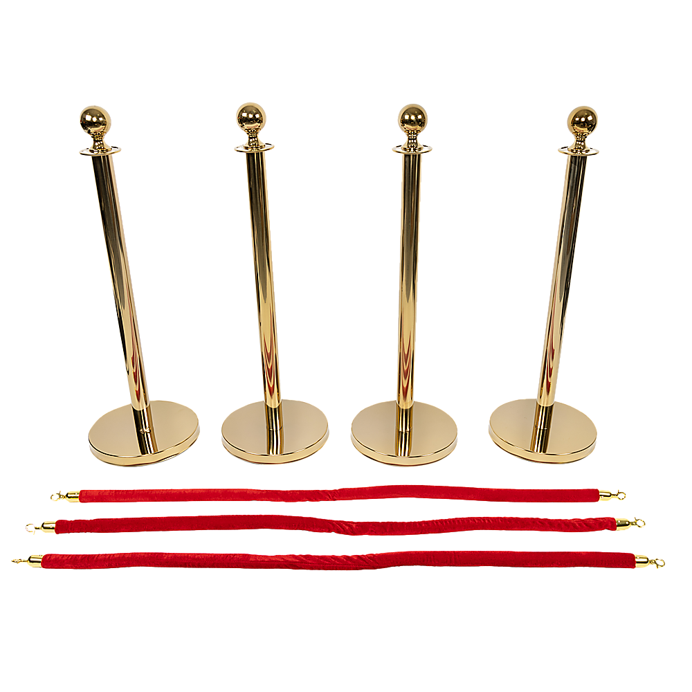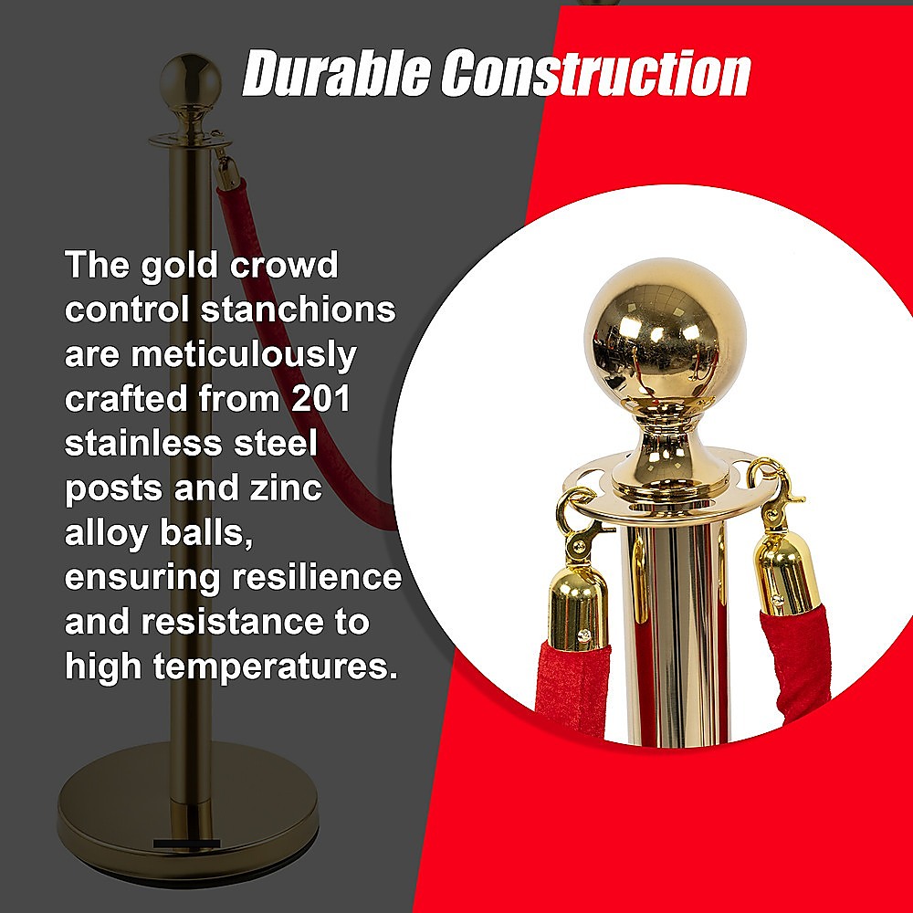 Constructed with durability in mind, the gold crowd control stanchions are meticulously crafted from 201 stainless steel posts and zinc alloy balls, ensuring resilience and resistance to high temperatures.