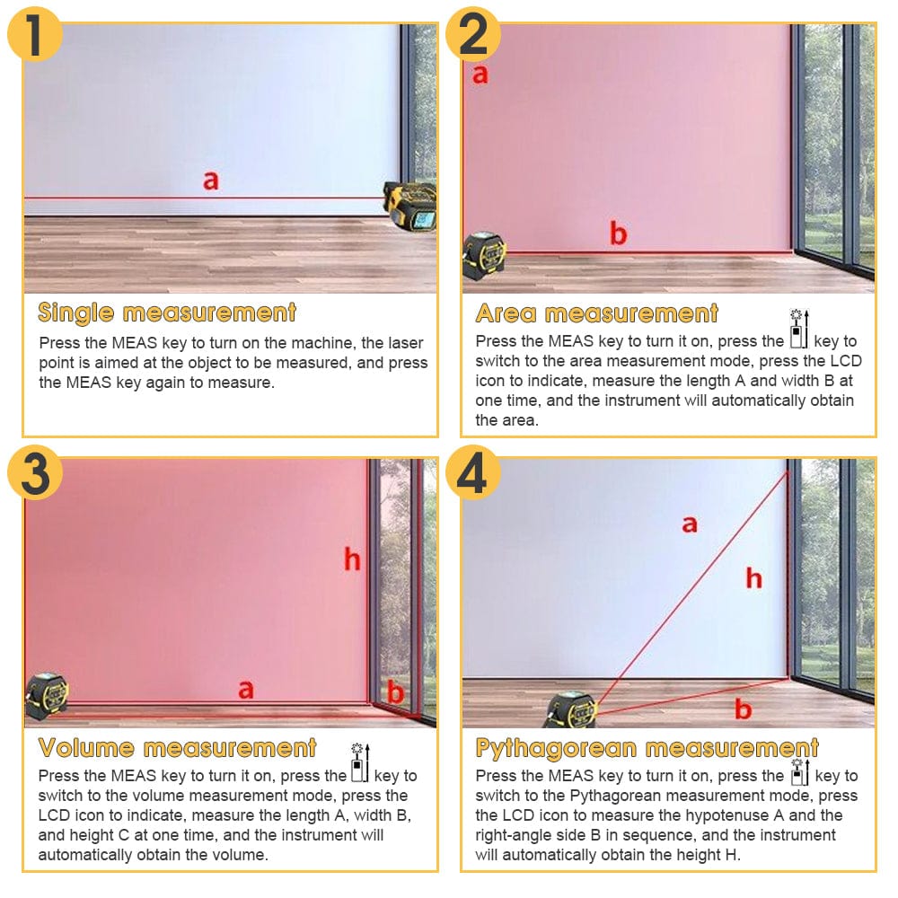 60m Laser Measure, Cross-line Laser Level, 5m Tape Measure Yellow
