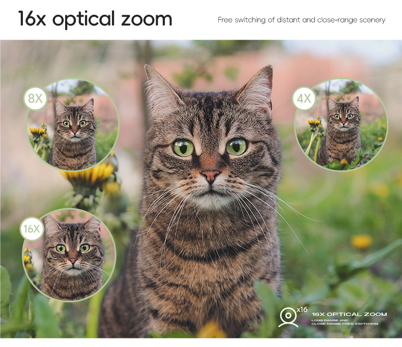 • 16x Powerful Digital Zoom: Get closer to your subjects with the 16x zoom capability.