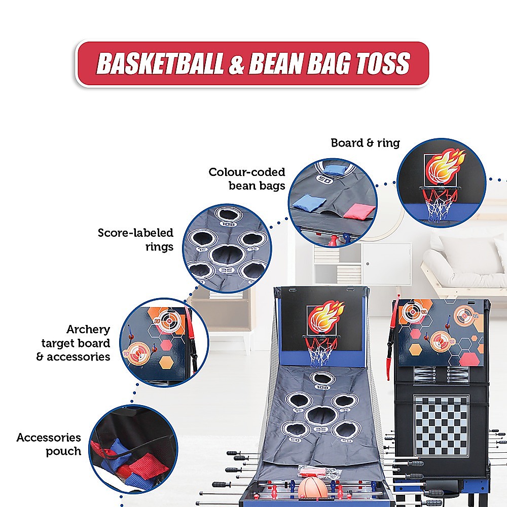 It's easy to set up and easy to maintain. Crafted from sturdy MDF, with steel rubber-handled foosball rods, it's as durable as it is versatile. Teach your kids some fun lessons about friction with your air hockey table, and then hone your jump shot with the basketball game afterwards. You and your family will never get bored again! Order your game set today!