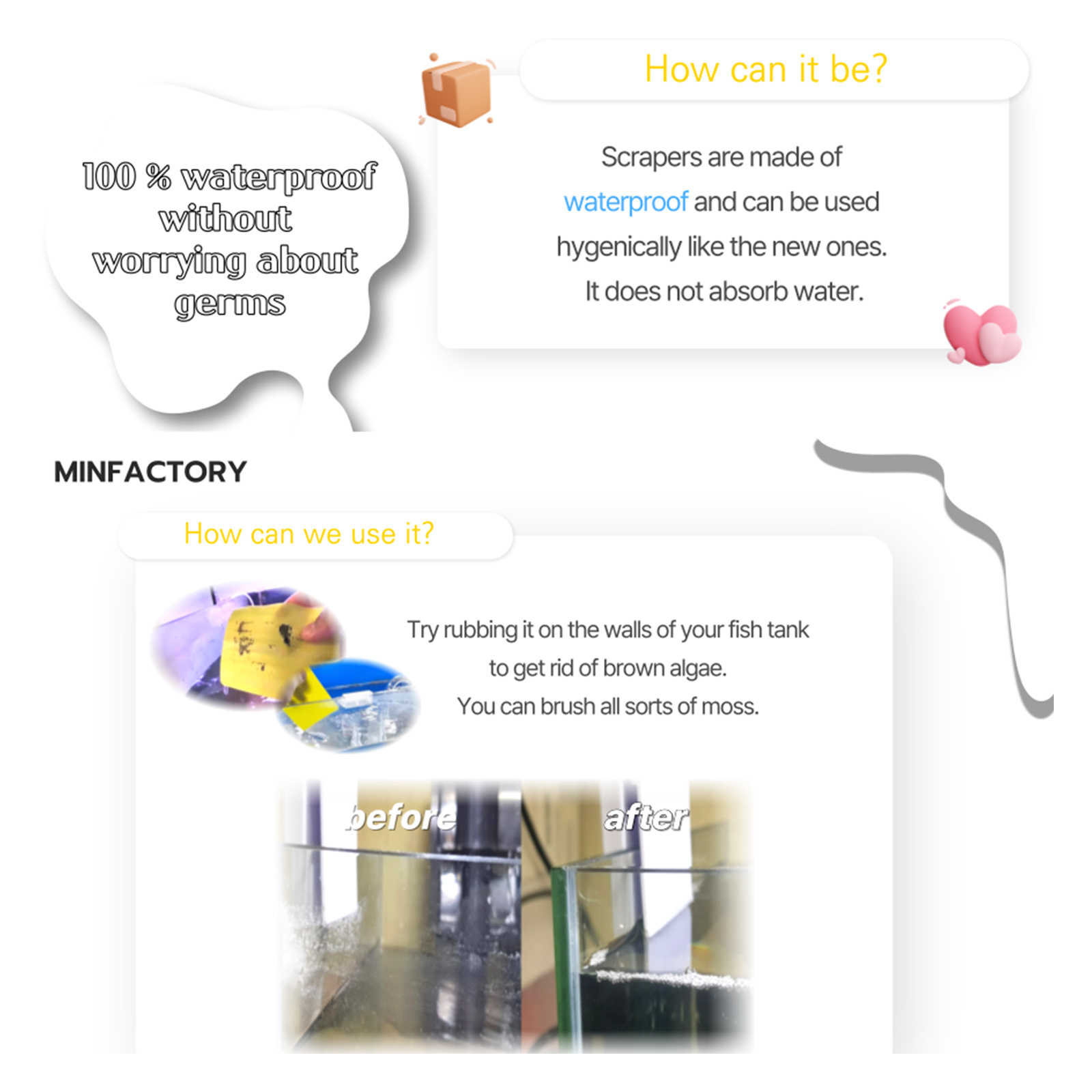 Introducing the Minfactory Fish Tank Scrubber – a set of 4 pieces proudly crafted in Korea!