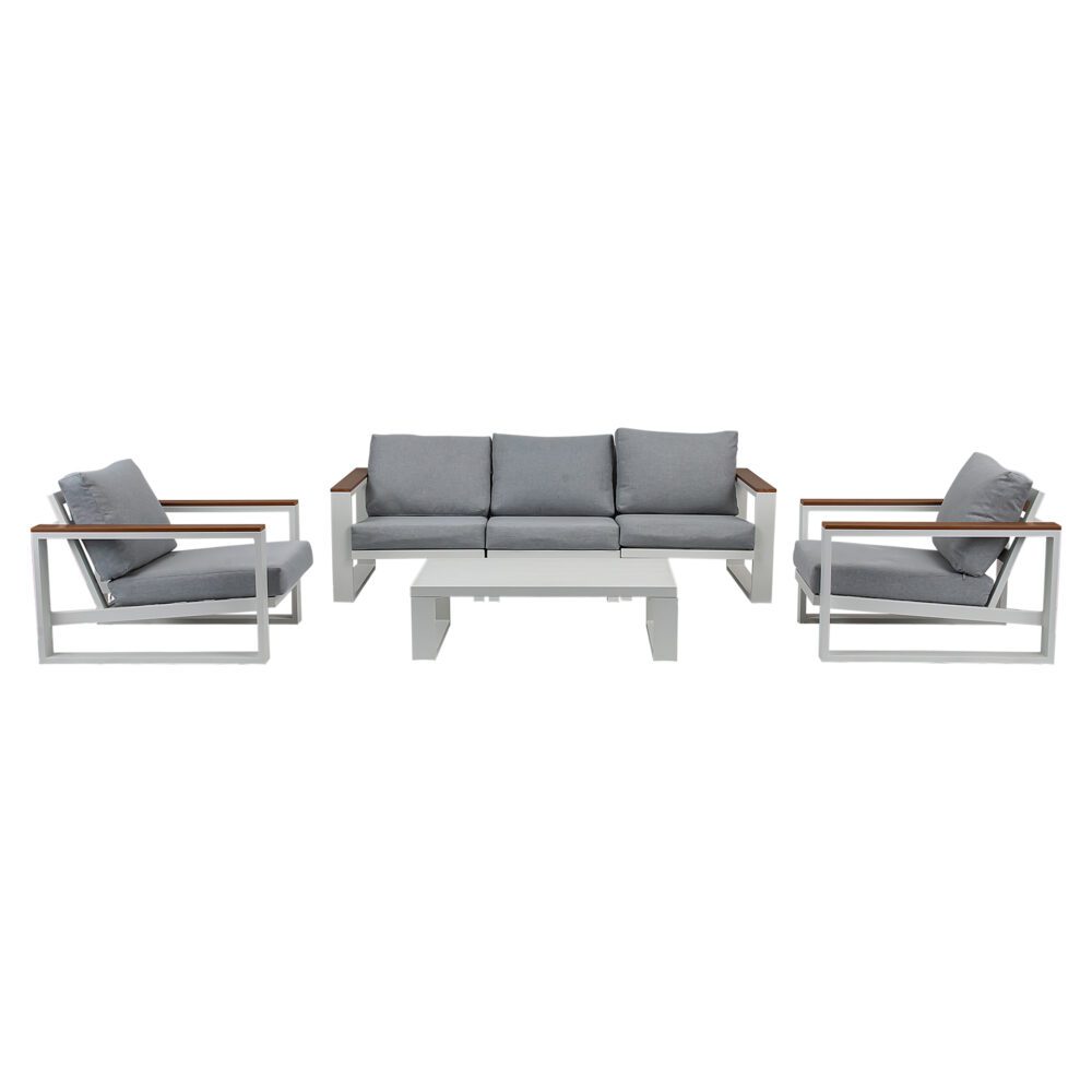 Create a stylish alfresco area with this contemporary designed lounge setting. Constructed from a powder coated aluminium with teak timber trimming