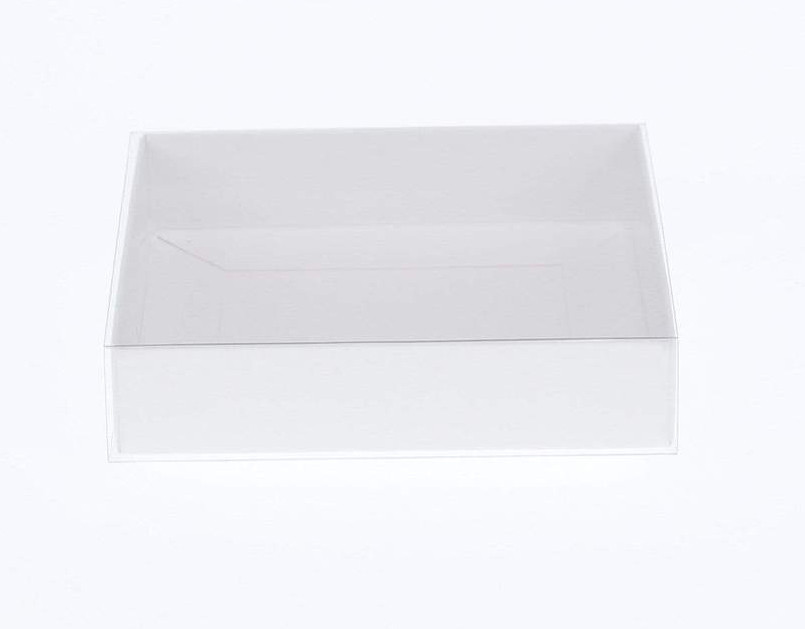50 Pack of 15cm Square Invitation Coaster Favor Function product Presentation Cookie Biscuit Patisserie Gift Box – 4cm deep – White Card with Clear Slide On PVC Lid