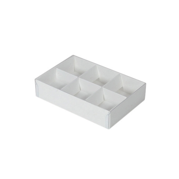 50 Pack of White Card Chocolate Sweet Soap Product Reatail Gift Box – 6 Bay Compartments – Clear Slide On Lid – 12x8x3cm