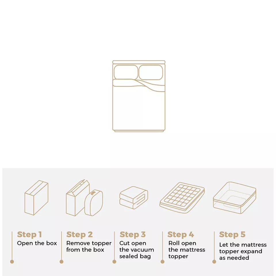 Turn your old mattress into a luxurious pillowtop mattress that equals 5star comfort. With its generous microfibre fillings, the topper provides a lofty cushion of softness supporting your every move. Plus, its anti-bacterial, dust mite-resistant and anti-allergy properties make this topper an absolute joy to use. Designed to work with mattresses of up to 5cm thick, the fully-fitted elastic skirt of the topper provides a snug fit at all times. Not least, the baffles box stitching design not only improves breathability but also ensures the fillings are evenly spread out and always in place.