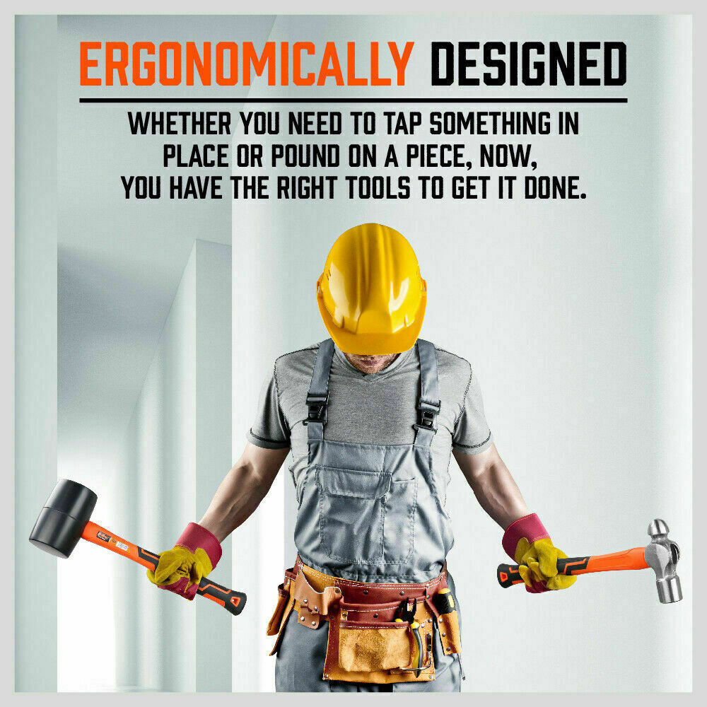 5Pc Hammer Set Rubber / Ball Pein / Sledge / Cross Pein Mallet TPR Grip Handle