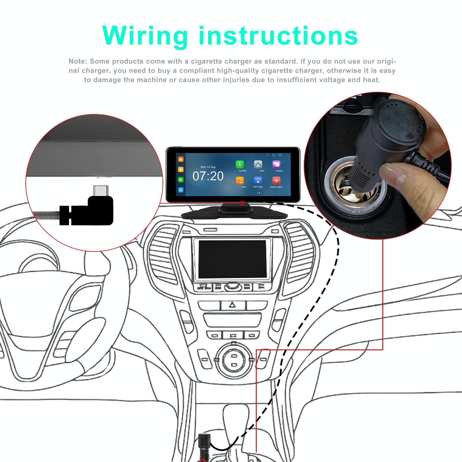 • Connects to carplay or android auto for online map navigation and music playback