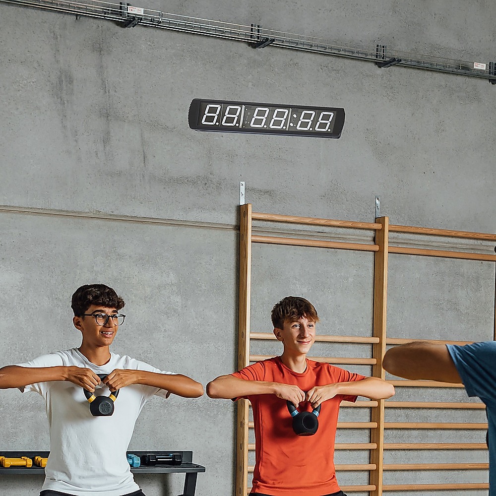 Designed with workouts in mind, there are 3 preprogrammed workout timers: tabata, fgb1 and fgb2.