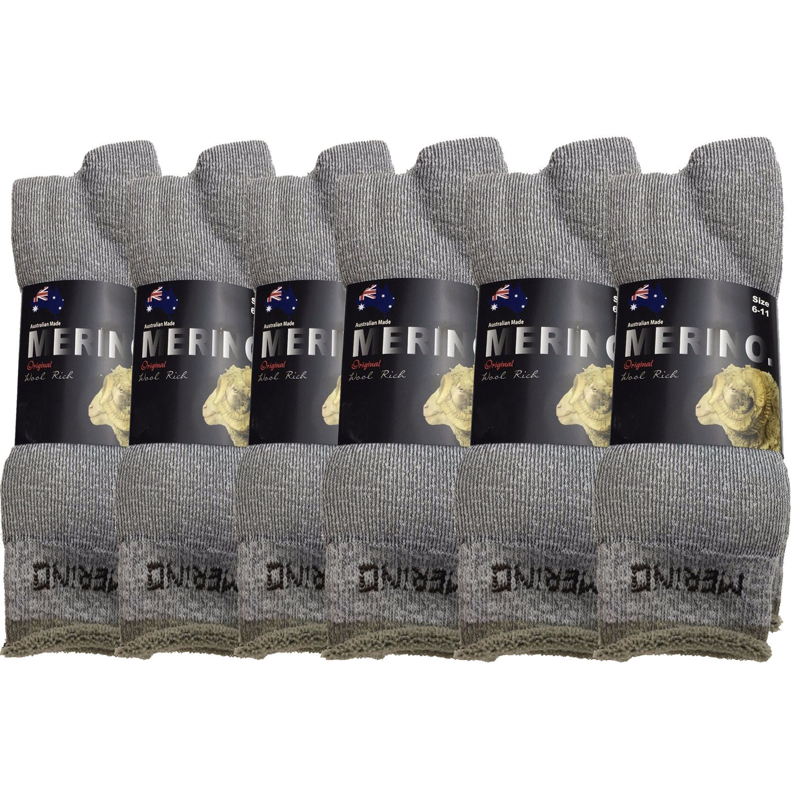 6 Pairs MERINO WOOL SOCKS Mens Heavy Duty Premium Thick Work Socks Cushion BULK – Grey – 11-14