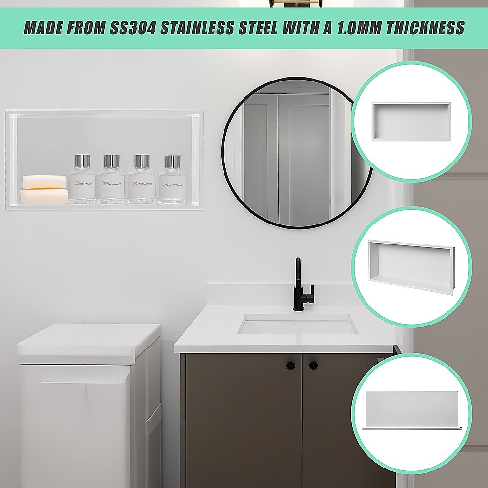 Upgrade your bathroom with this stylish and functional shower niche. Experience the perfect blend of modern design and practical storage.