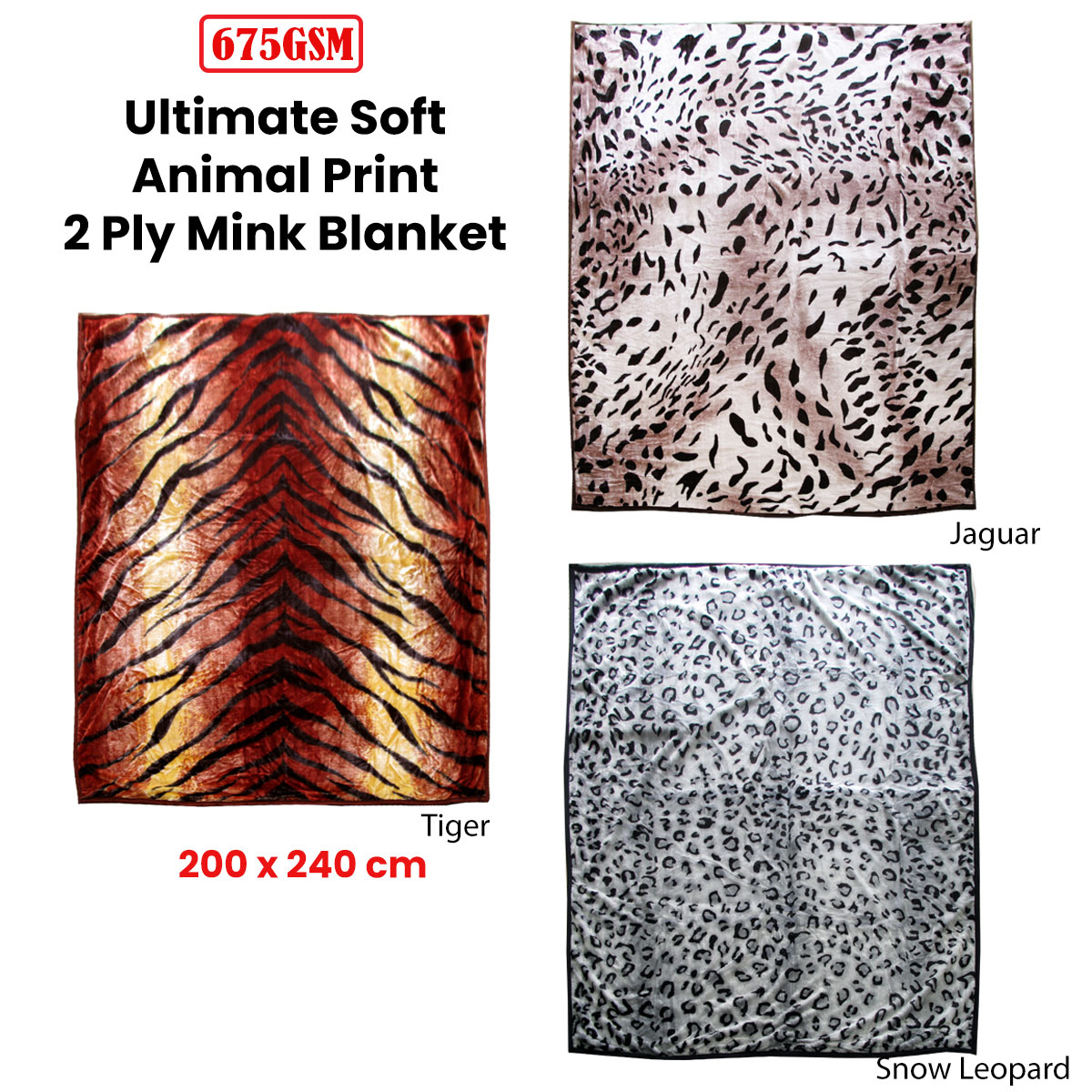 675gsm 2 Ply Animal Print Faux Mink Blanket Queen 200x240 cm Jaguar