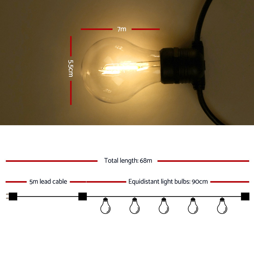 68m LED Festoon String Lights Outdoor Christmas Decorations Wedding Garden Party