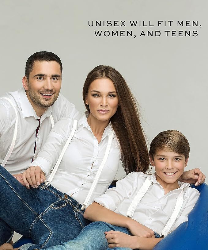 6x Mens Suspenders Braces Adjustable Strong Clip On Elastic Formal Wedding BULK – White