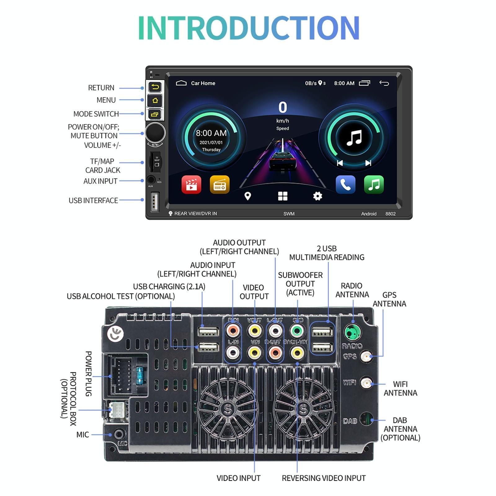 • Rca Port Parameters: 2 Audio Outputs (Left And Right Channels), 1 Subwoofer Output, 1 Video Output, 2 Audio Inputs (Left And Right Channels), 2 Video Inputs, 1 Reversing Video Input
