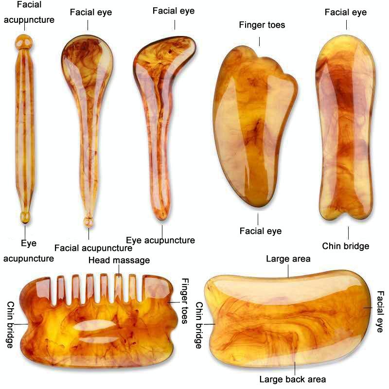 • 1 x 7-Piece Facial Tendon Stick Scraping Board Set For Meridian Acupuncture Green