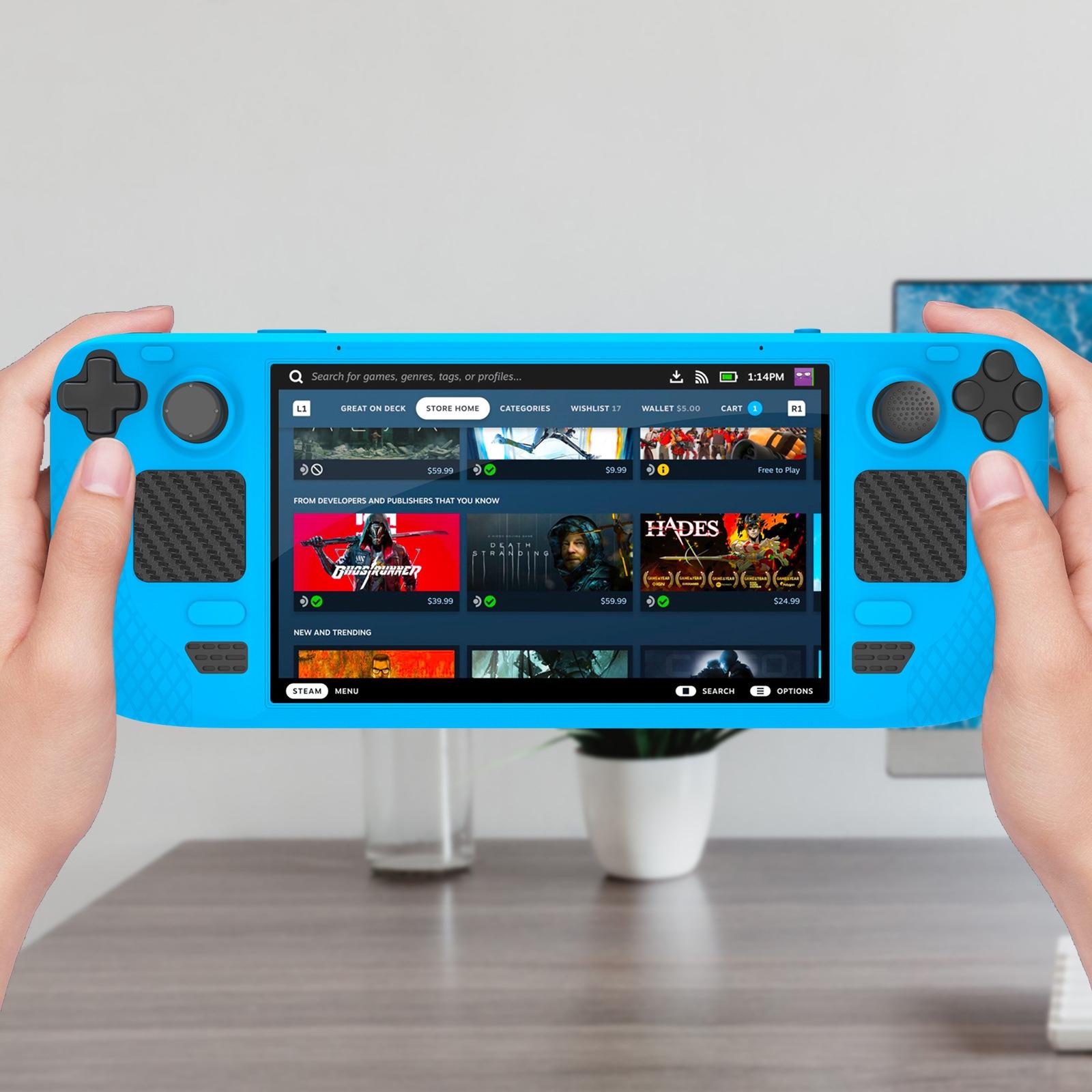 7-piece Silicone Case & Joystick Cap Set for Steam Deck with Touch Board Sticker – Blue