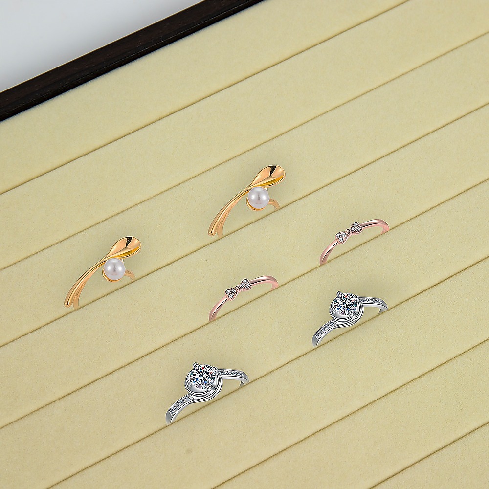 Each tray features seven velvet-covered slots that are spaced to securely hold rings, earrings and other small jewellery items in an organised manner. The pieces really stand out against the black backdrop, so it's easy to see the details of each piece. If you've got a larger jewellery collection, multiple trays can be stacked to provide space-saving storage.