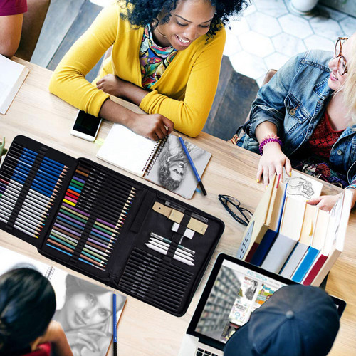 The colored pencil set is the ideal tool for indoor and outdoor sketching in a canvas bag. You just expand your zip pocket and see the tools that you want.
