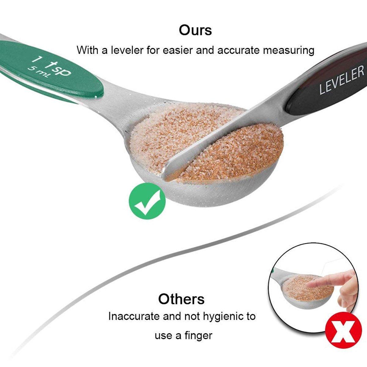 Dual-Head Design: Each spoon features two heads, enabling you to measure both dry and liquid ingredients with a single tool.