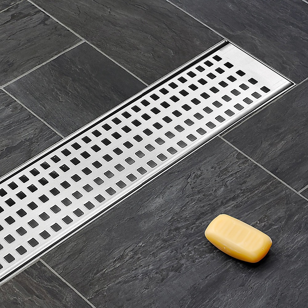 This attractive 900mm bathroom shower grate is perfect for all your water drainage needs including in the shower, washroom, bathroom and the kitchen. The 900mm shower grate is constructed of sturdy stainless steel and designed in a square pattern configuration that is functional as well as attractive. The sleek modern grate is perfect for any décor.