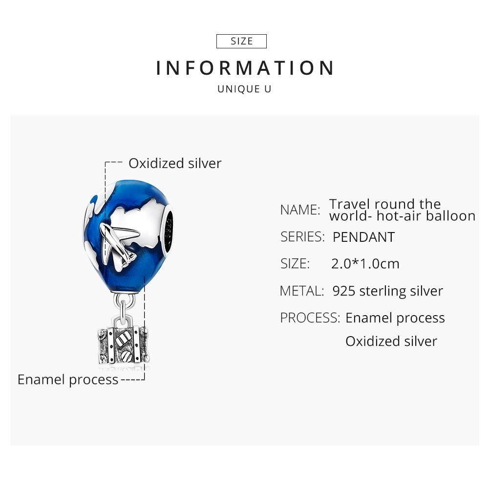 • 1 x 925 Sterling Silver Airplane Hot Air Balloon Pendant For Diy Bracelets Necklaces