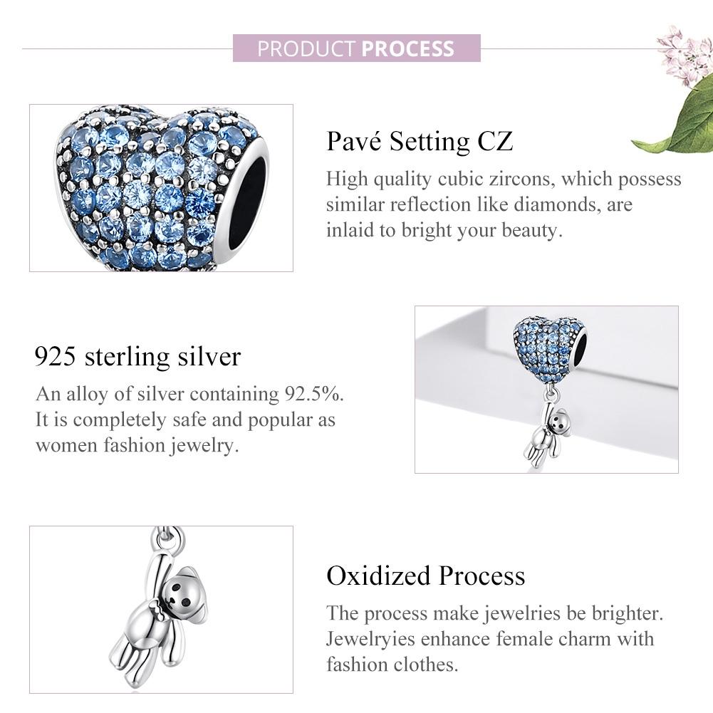 925 Sterling Silver Heart Balloon Bear Pendant For Diy Bracelets & Necklaces