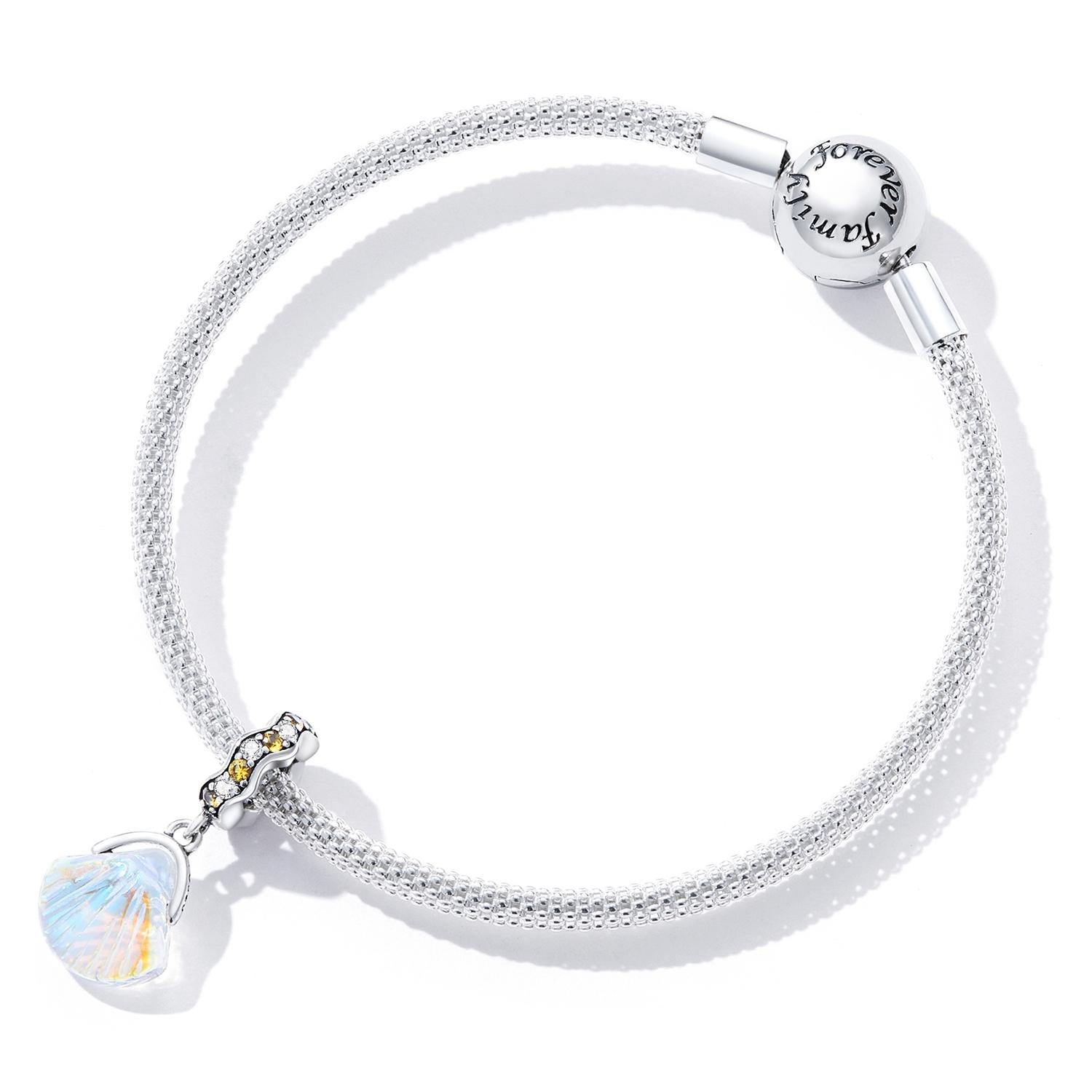 925 Sterling Silver Iridescent Shell Pendant For Diy Bracelet Or Necklace