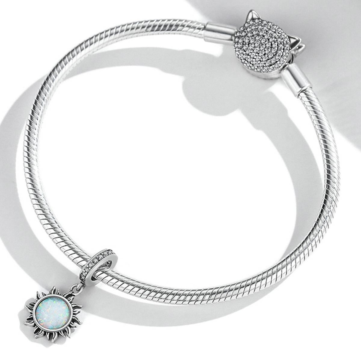 925 Sterling Silver Opal Sun Pendant For Diy Bracelets & Necklaces