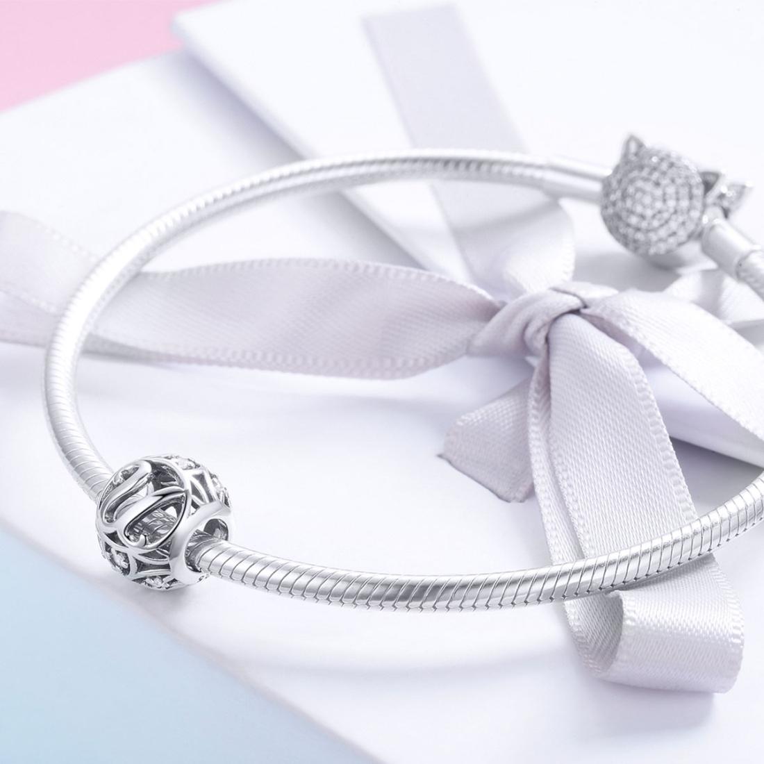 925 Sterling Silver Personalized Letter Beads For Diy Bracelets & Necklaces Style – U