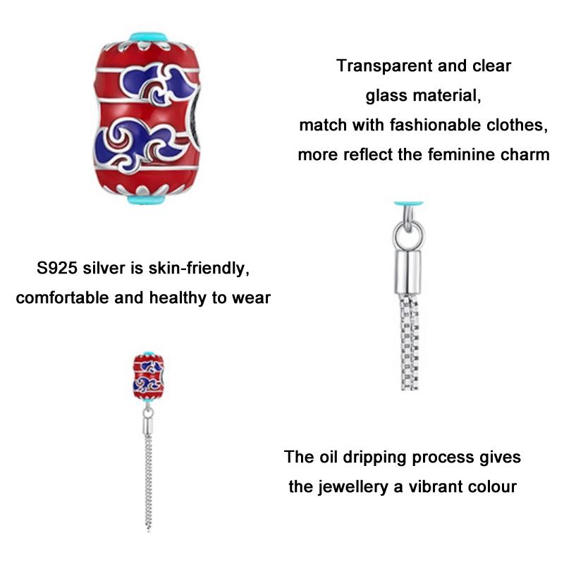 • 1 x 925 Sterling Silver Red Lantern Bracelet With Auspicious Clouds Bead