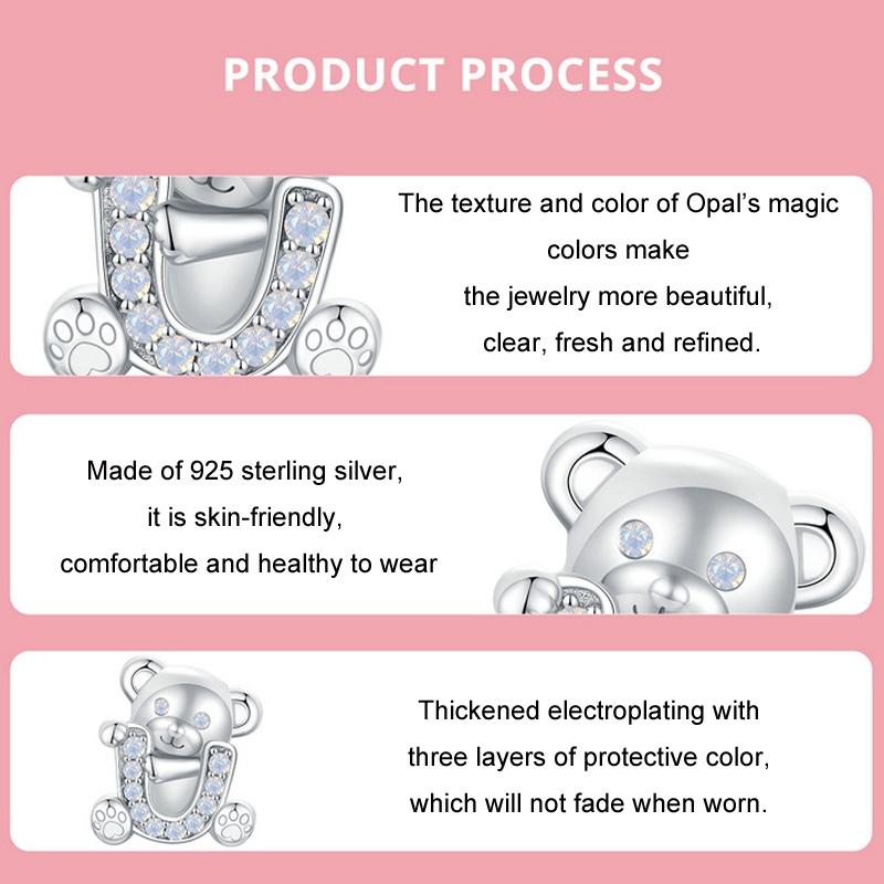 • 1 x 925 Sterling Silver Valentine’S Day Bear Beads