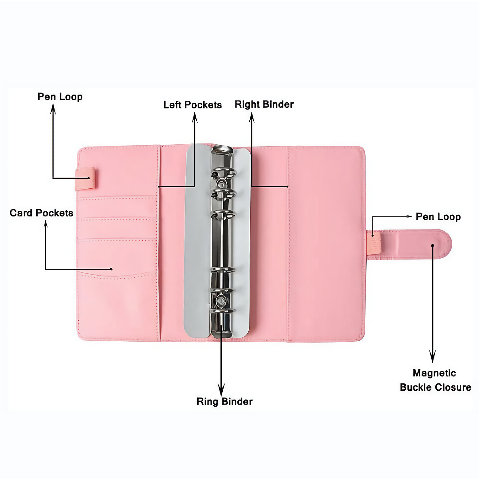 A6 PU Leather Notebook Binder Budget Planner Organizer Cover Cash Pockets Sheets