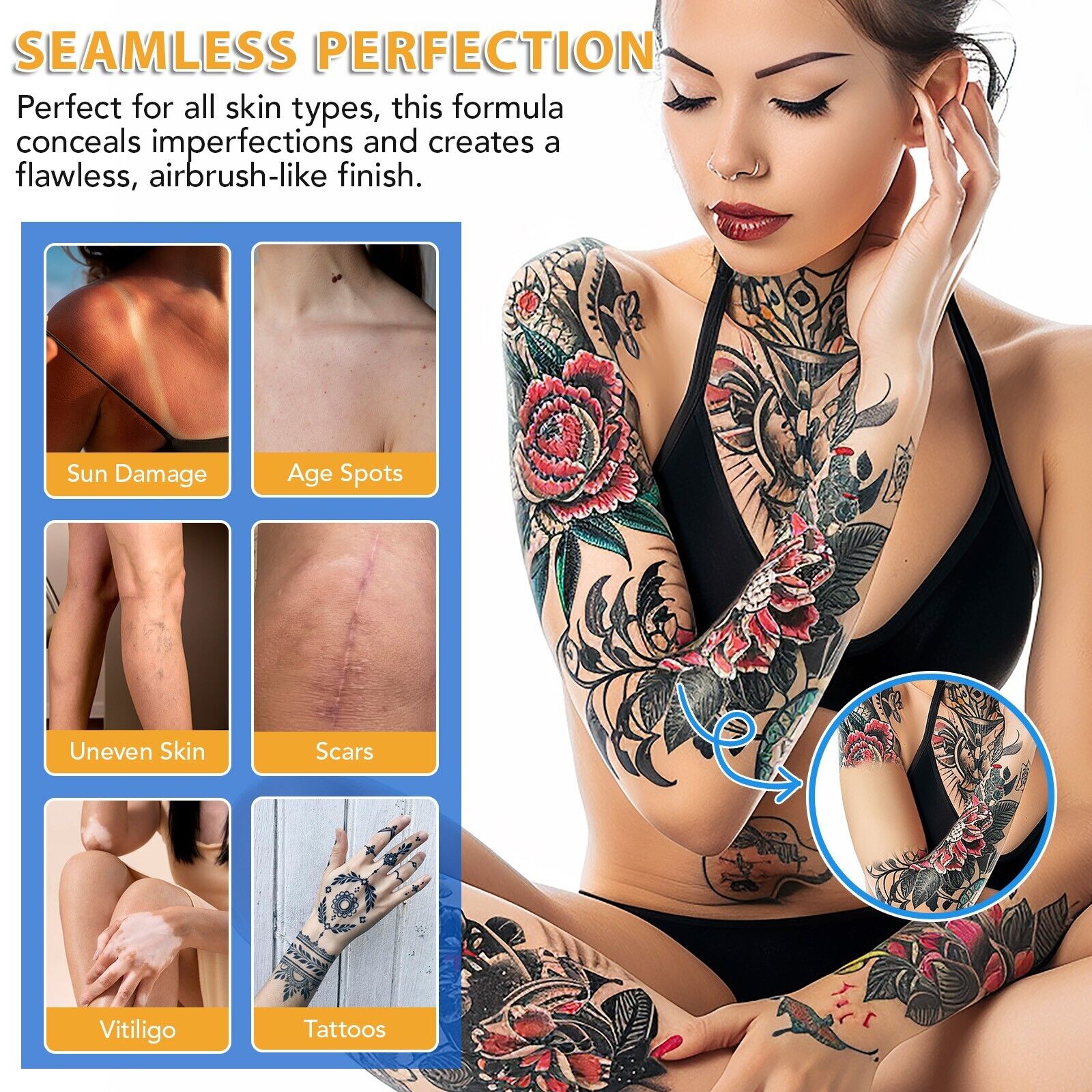 - Leg and body makeup is water and transfer resistant