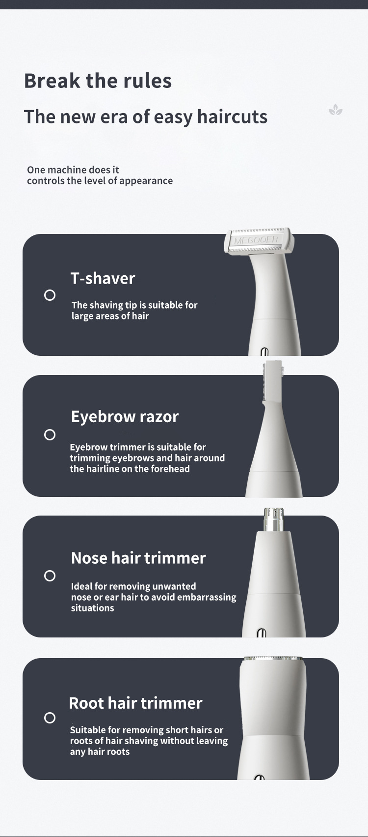 Simplify your beauty routine with this all-in-one Multi-purpose Electric Hair Shaver! Designed for total body grooming, this versatile tool eliminates the need for multiple devices. Achieve smooth, flawless skin effortlessly from head to toe with its interchangeable heads, safe operation, and convenient features.