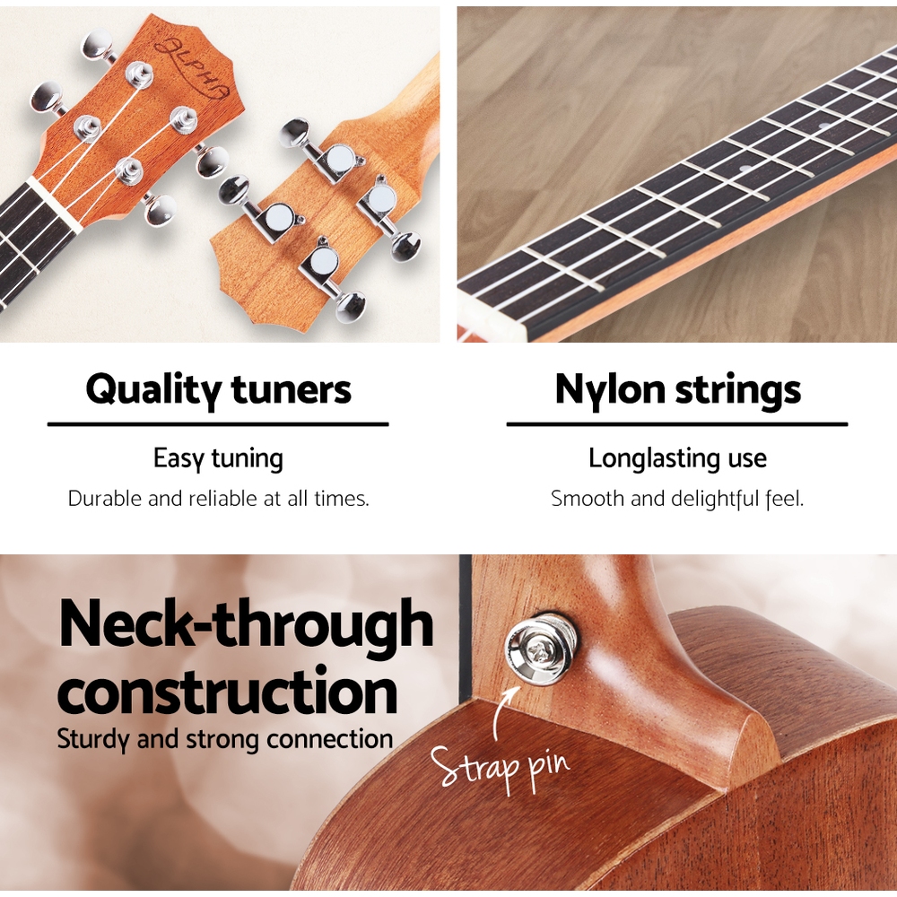 Alpha 26″ Ukulele Natural Mahogany Tenor Beginner Gift w/ Carry Bag
