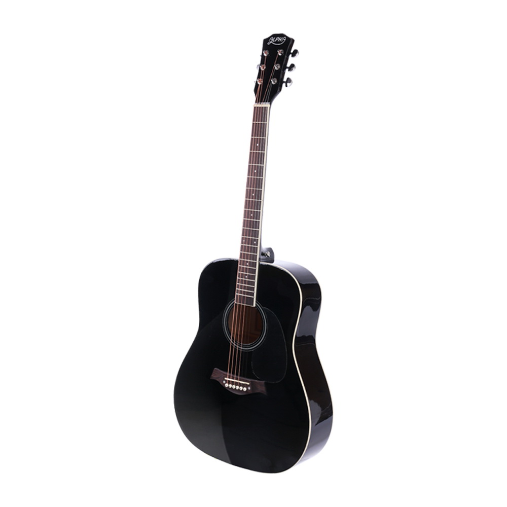 Alpha 41 Inch Acoustic Guitar Wooden Body Steel String Dreadnought Stand Black