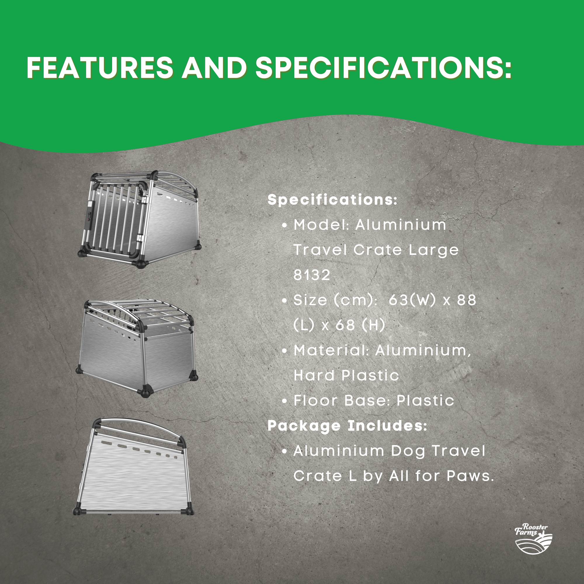 The All For Paws Aluminium Travel Crate is an exceptionally sturdy and secure pet car travel enclosure, with a sleek and modern design.