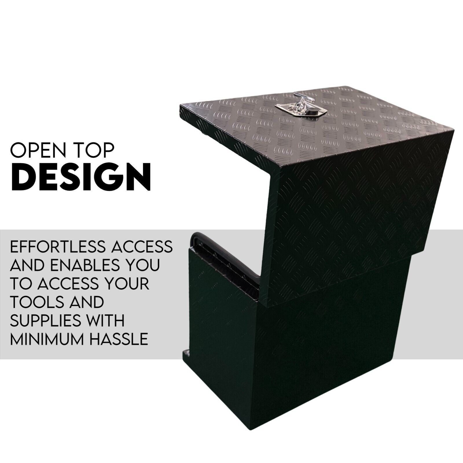 The Robusto Aluminium Tool box can help you securely carry all your tools. It protects your tool, especially your generator from rattling and hopping around the truck bed and getting damaged, and from harsh weather elements. It also helps you easily organize all your tools or personal equipment for quick access.
