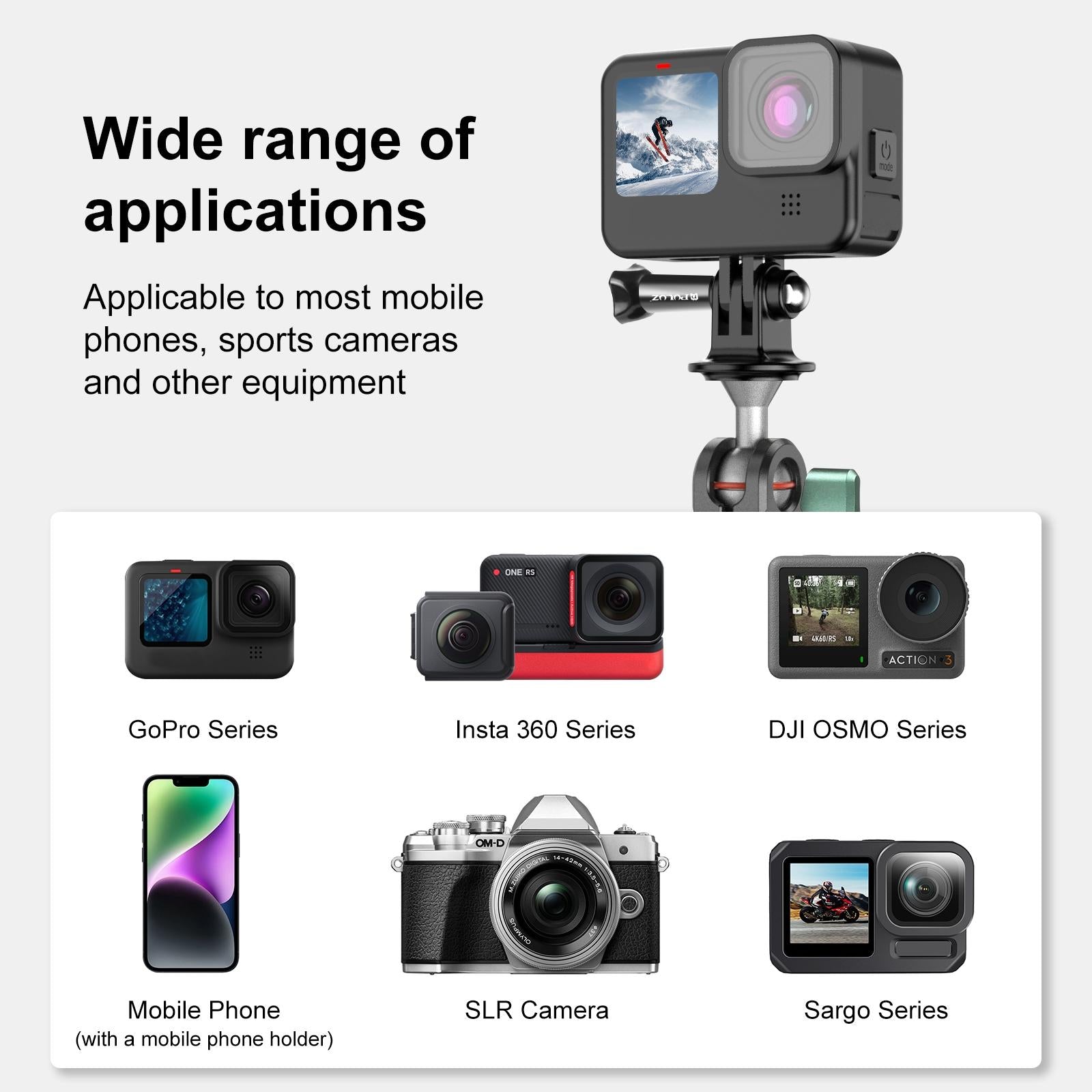 • Strong load-bearing capacity, can be connected to sports cameras, mobile phones, mirrorless cameras, camping lights and other equipment.
