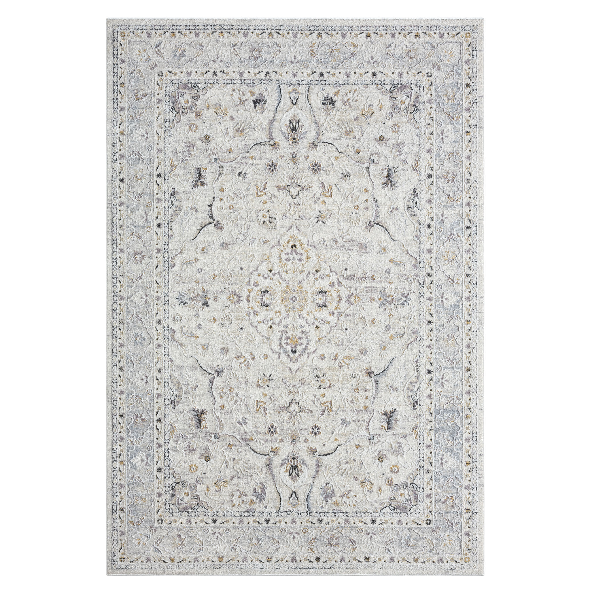 This Premium rug has an all-over pattern with purposeful fading for a vintage look that softens your space. It’s power-loomed in Turkey from stain-resistant polypropylene and polyester comes with a latex backing to help keep it in place. Overall multi tone becomes blues, beiges, and creams up close.French Country accent to medium-traffic areas like your dining room or home office. Make sure to pick up a rug pad to secure this rug underfoot.This elegant range also has shed-resistant and anti-static properties for easy maintenance.