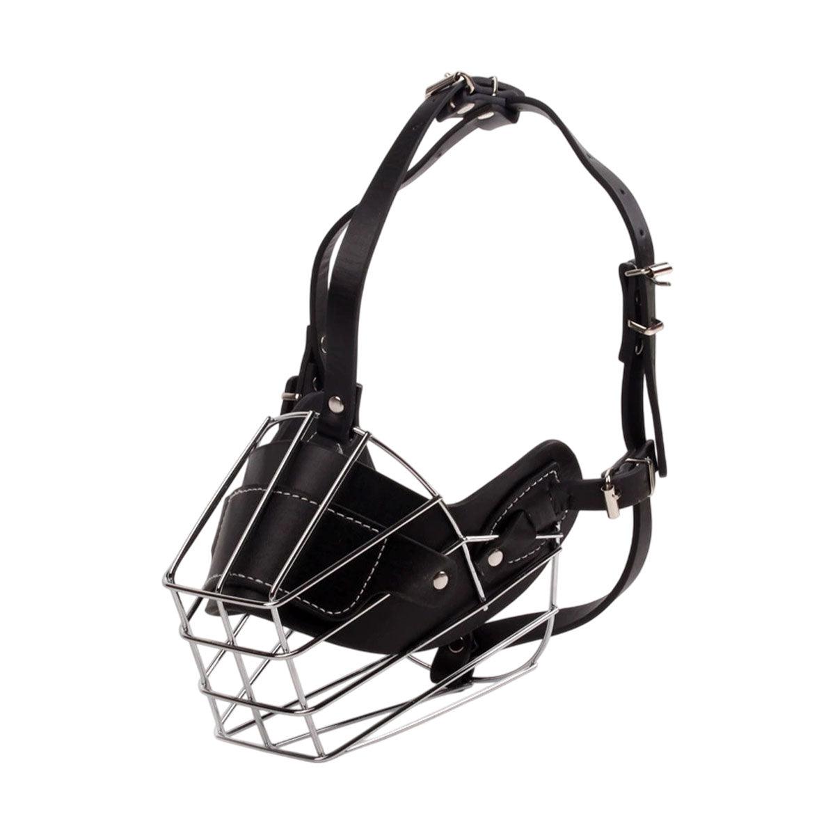 This durable dog muzzle features a sturdy stainless steel frame and a comfortable PU leather lining, providing effective protection for your pet. It helps prevent biting, barking, and eating harmful objects, making it ideal for training, vet visits, and outdoor walks. The adjustable straps ensure a secure and comfortable fit for different dog breeds. With its breathable design, your dog can pant and drink water freely while staying safe. Made from high-quality materials, this muzzle is rust-resistant and built for long-term use.