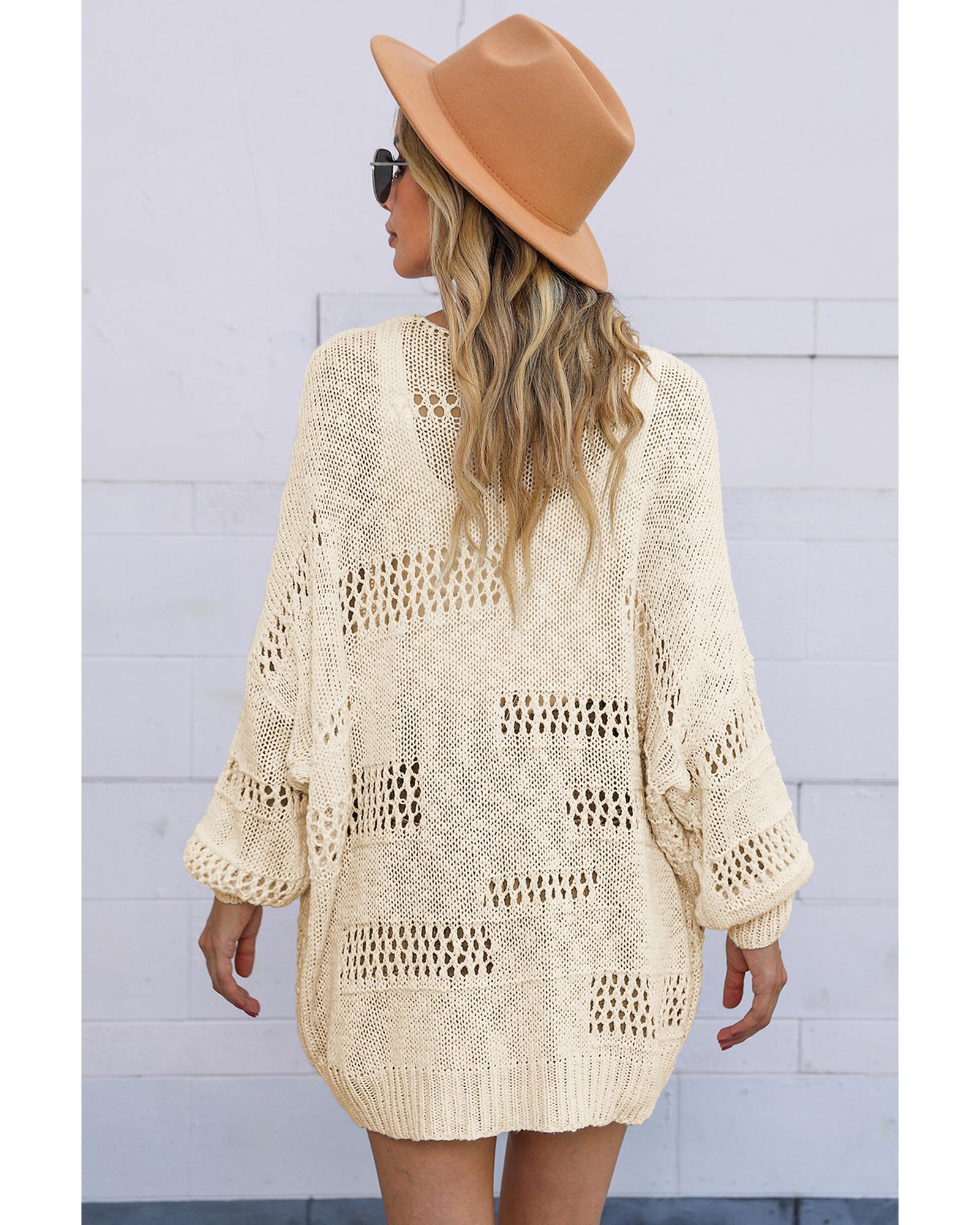 Apricot Casual Hollowed Knit Dolman Sleeve Cardigan – M