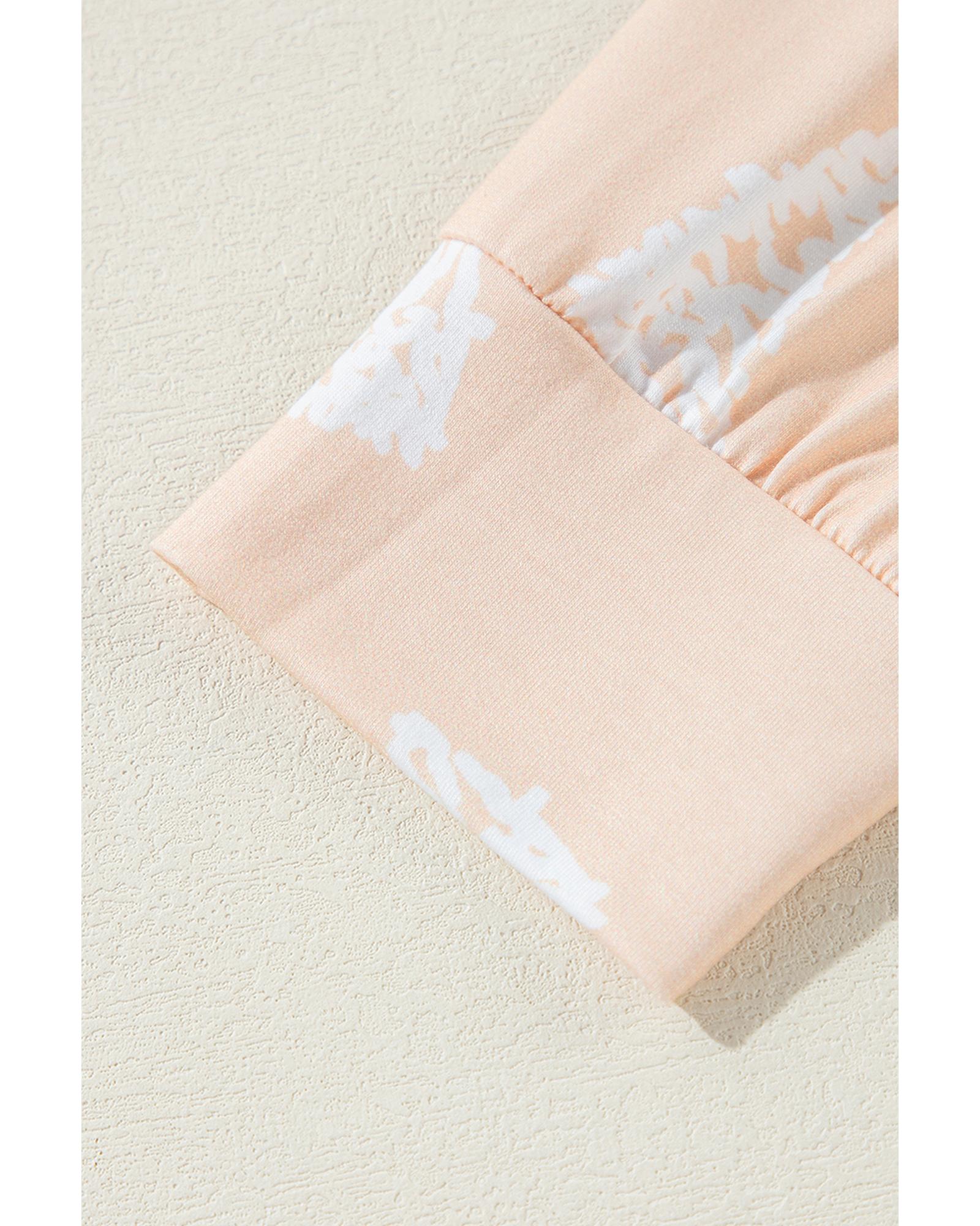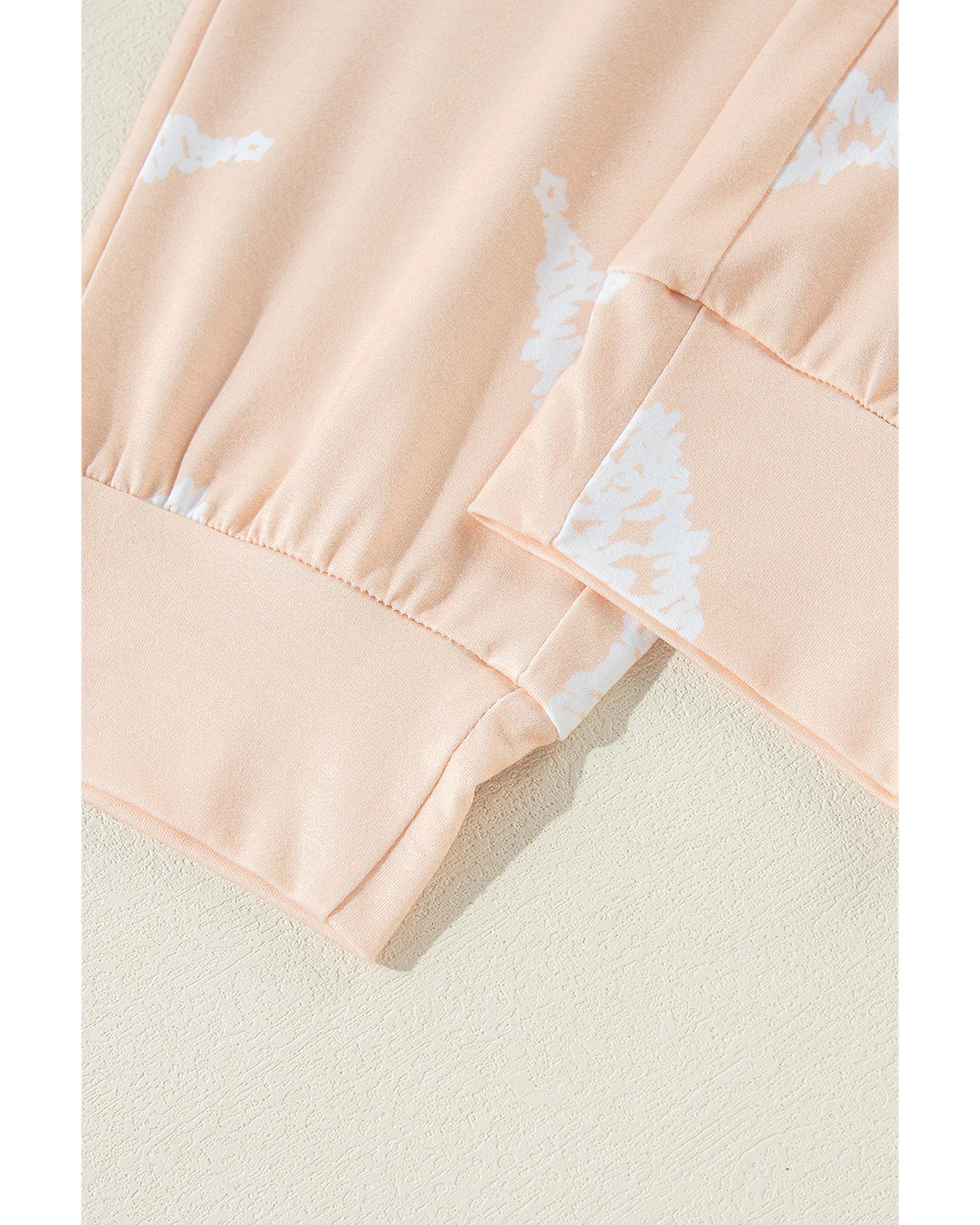 Apricot Christmas Tree Print Loose Fit Two Piece Pajama Set – XL