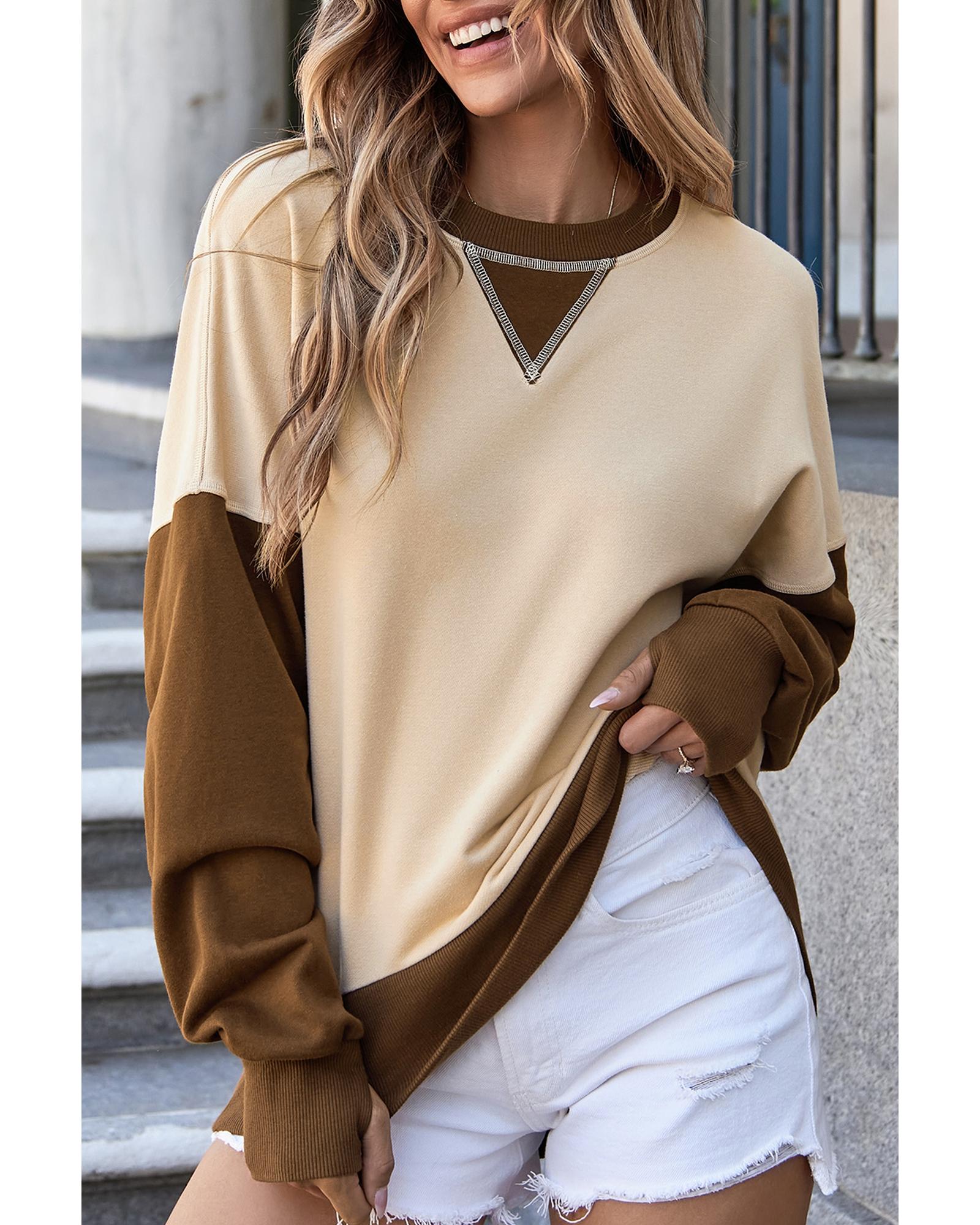 Apricot Color Block Thumbhole Sleeve Drop Shoulder Sweatshirt – S
