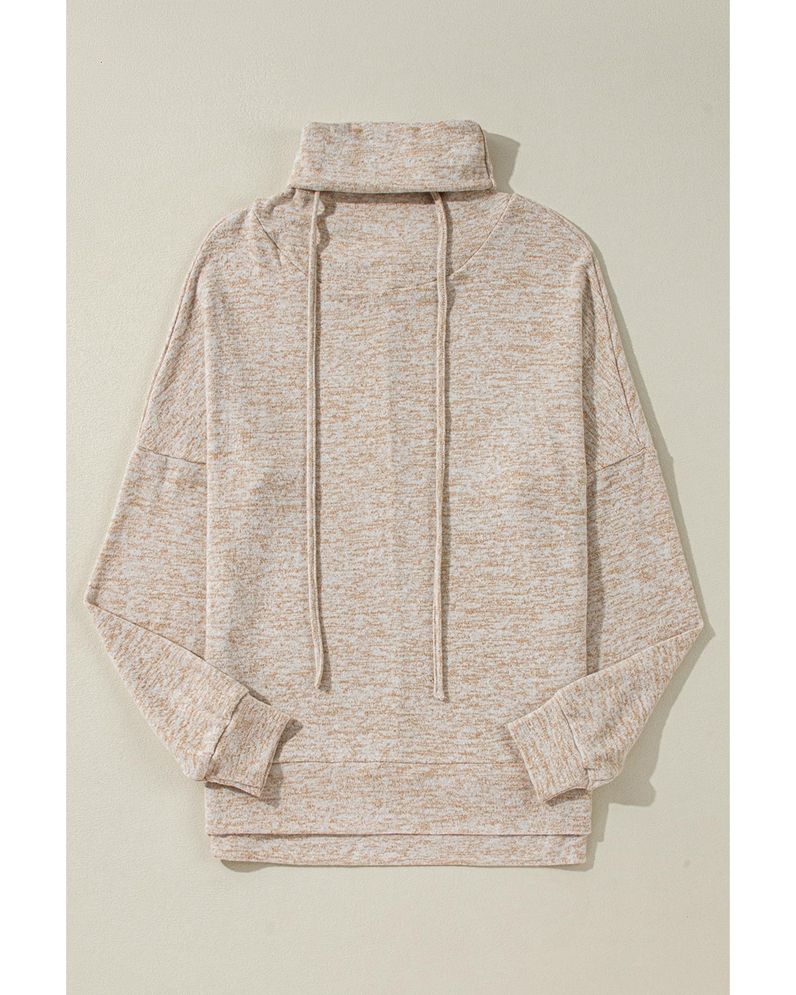 Apricot Drawstring Cowl High Neck Long Sleeve Split Top – M